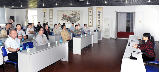 圖為公司中心組成員在認真聽取植樹模范余曉蘭“治理荒山,植樹造林”事跡報告。 白治斌 攝