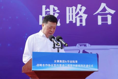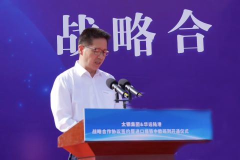 太鋼集團(tuán)黨委書(shū)記、董事長(zhǎng)吳小弟代表太鋼向?yàn)榘嗔虚_(kāi)通提供鼎力支持的省市單位、路局、海關(guān)、銀行,特別是華遠(yuǎn)陸港的領(lǐng)導(dǎo)和同仁們表示衷心感謝。